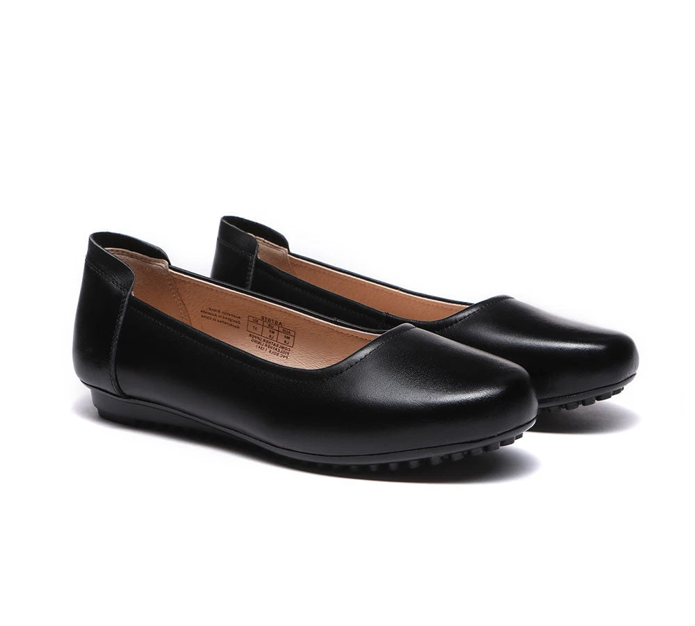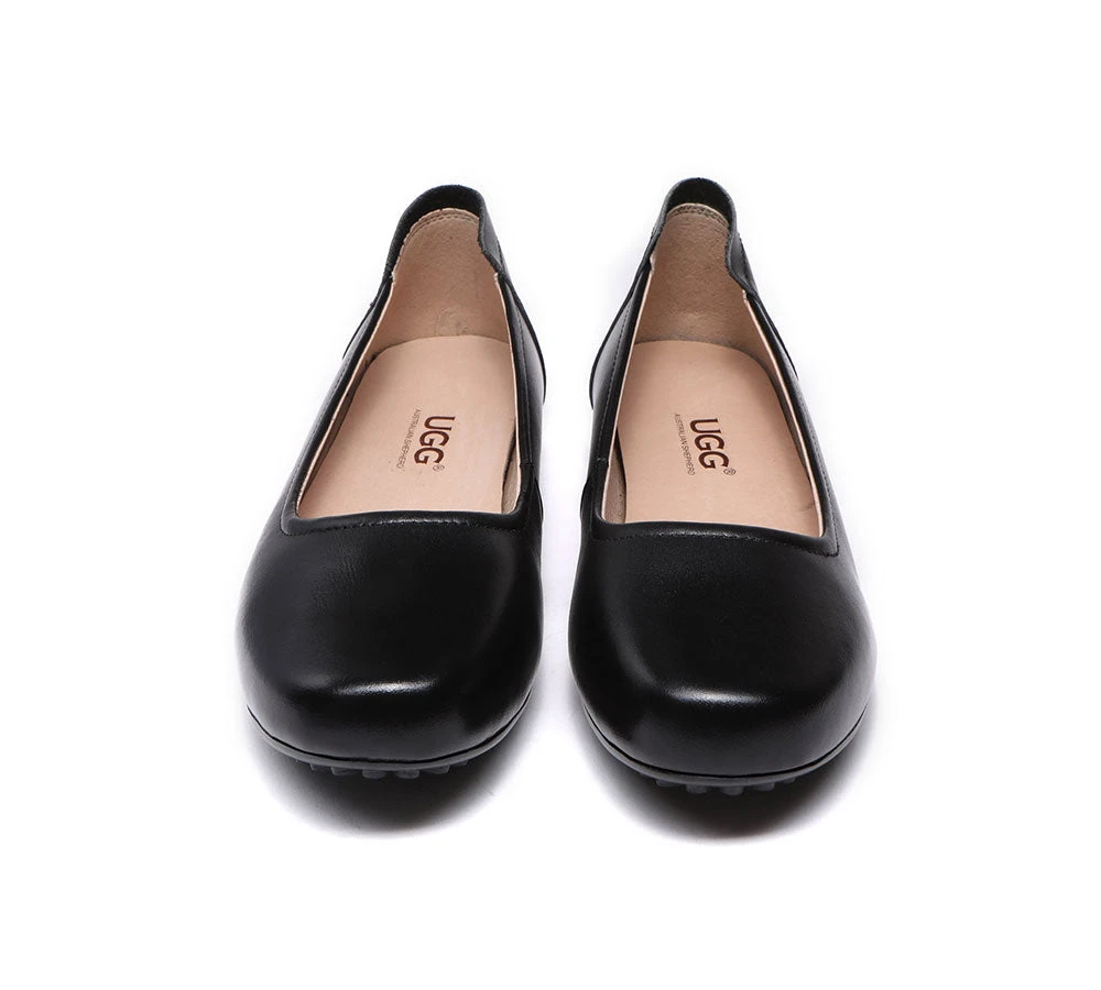 All-Black Leather Women Ballet Flat Fern #AS7018