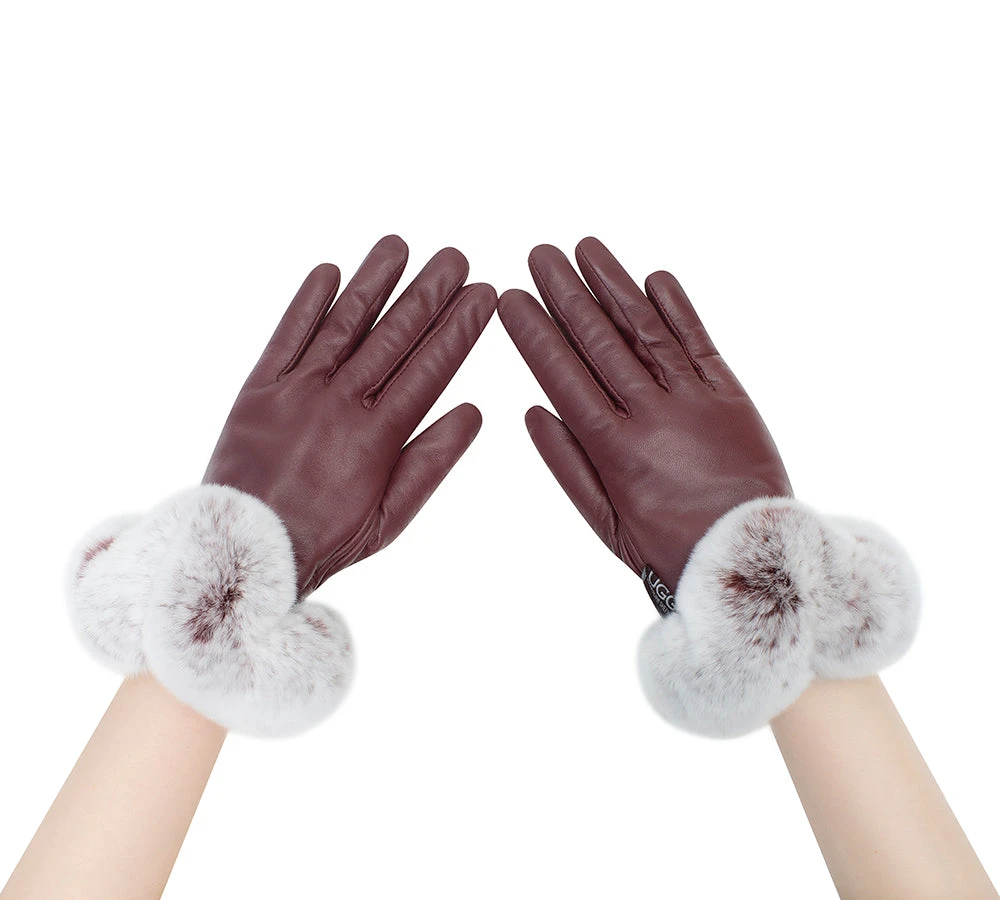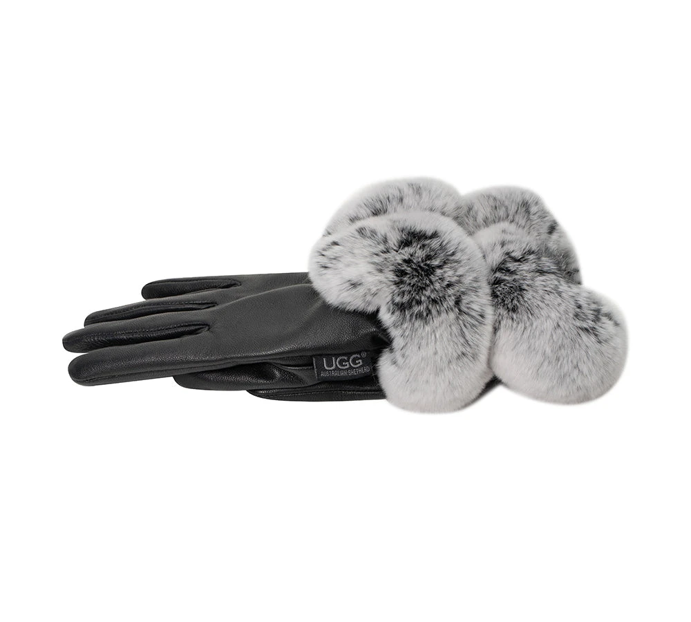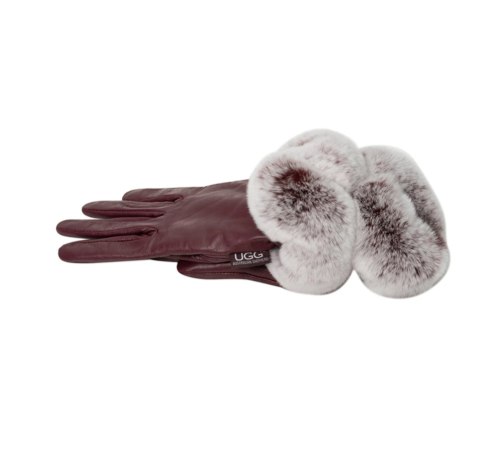 UGG Australian Shepherd Ladies Sheepskin Leather Gloves with Rabbit Fur Cuffs #ASA035