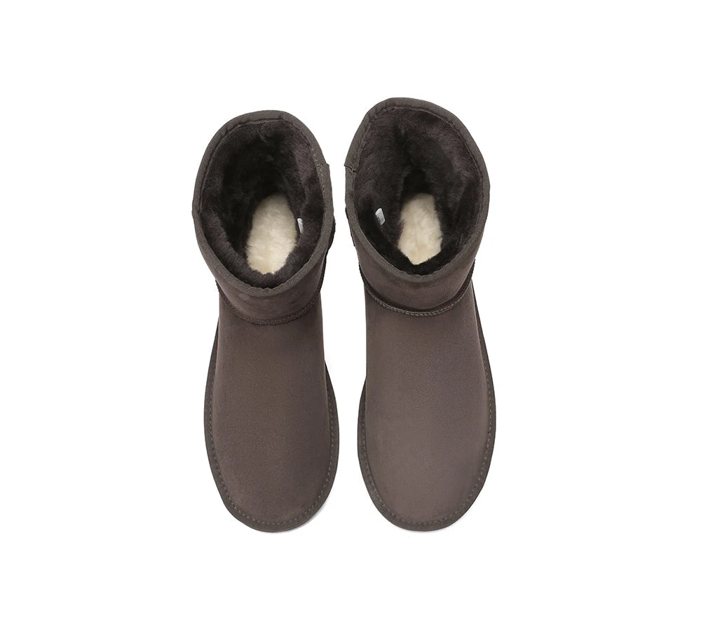 Our Mini Classic Ugg Boots in Australian Sheepskin are a must in the winter wardrobe! This style has been made in a larger size to ensure there are a pair for every person. With Genuine Double Face sheepskin, water resistant features and a non-slip EVA sole, these boots will keep your feet warm throughout the colder months.