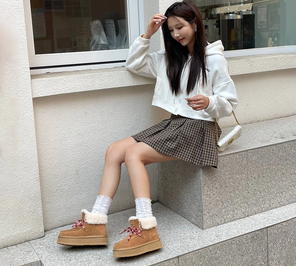 Surprise your friends and family with these boots – a perfect gift that combines practicality and fashion. Elevate your winter wardrobe with the Sheepskin Wool Lace Up Ankle Platform Boots and make a statement wherever you go.