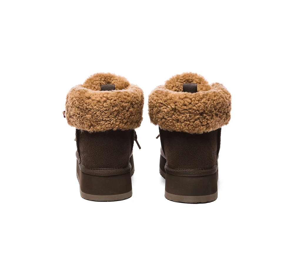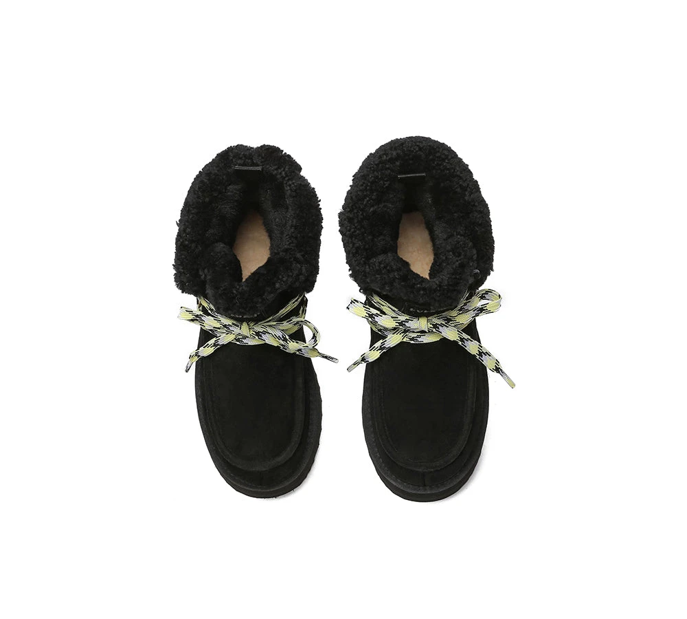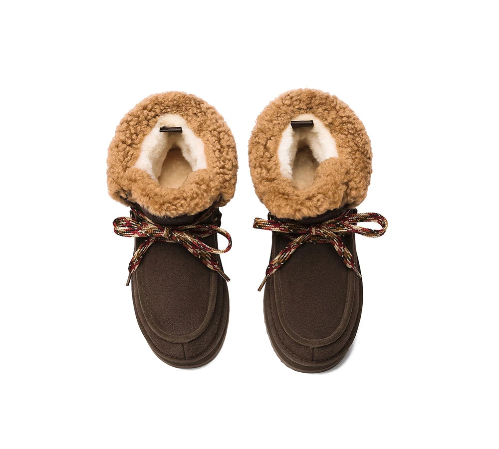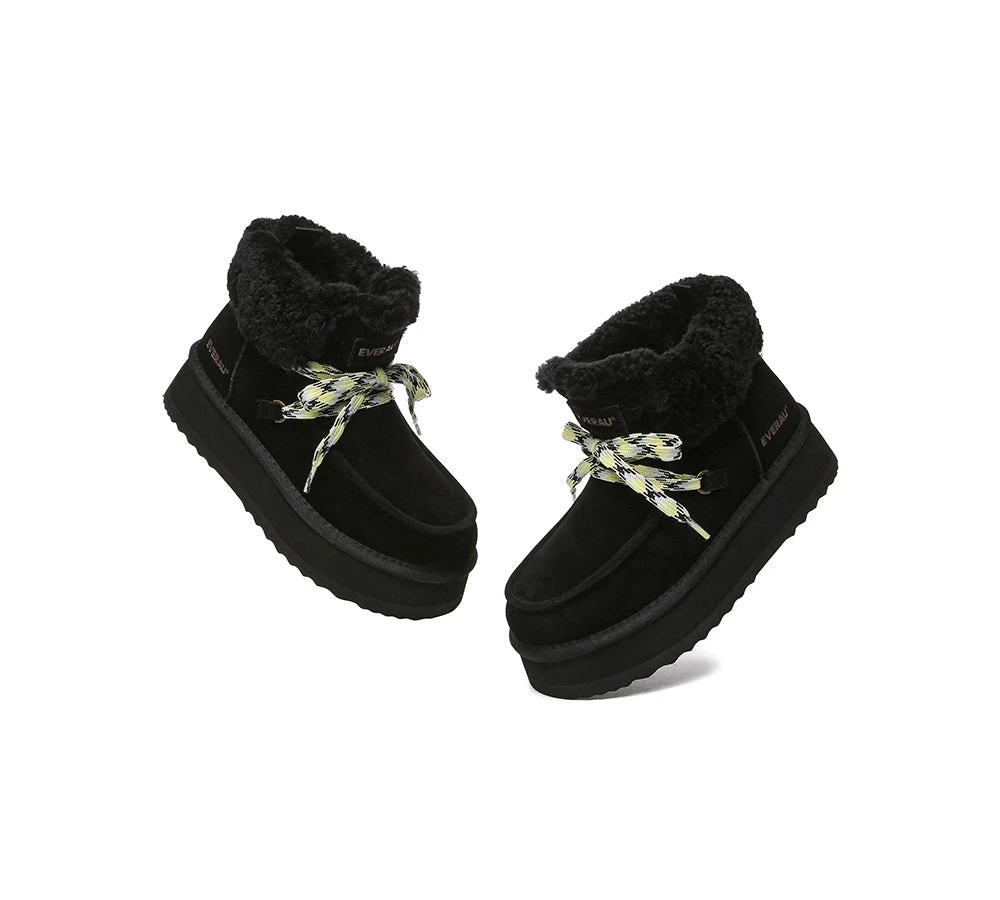EVERAU® UGG Boots Women Sheepskin Wool Lace Up Ankle Platform Boots Honour #EA3158