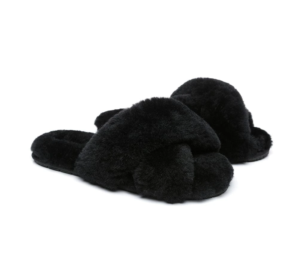 UGG Slides Sheepskin Wool Crossover Fluffy Slides Linty#AS2012