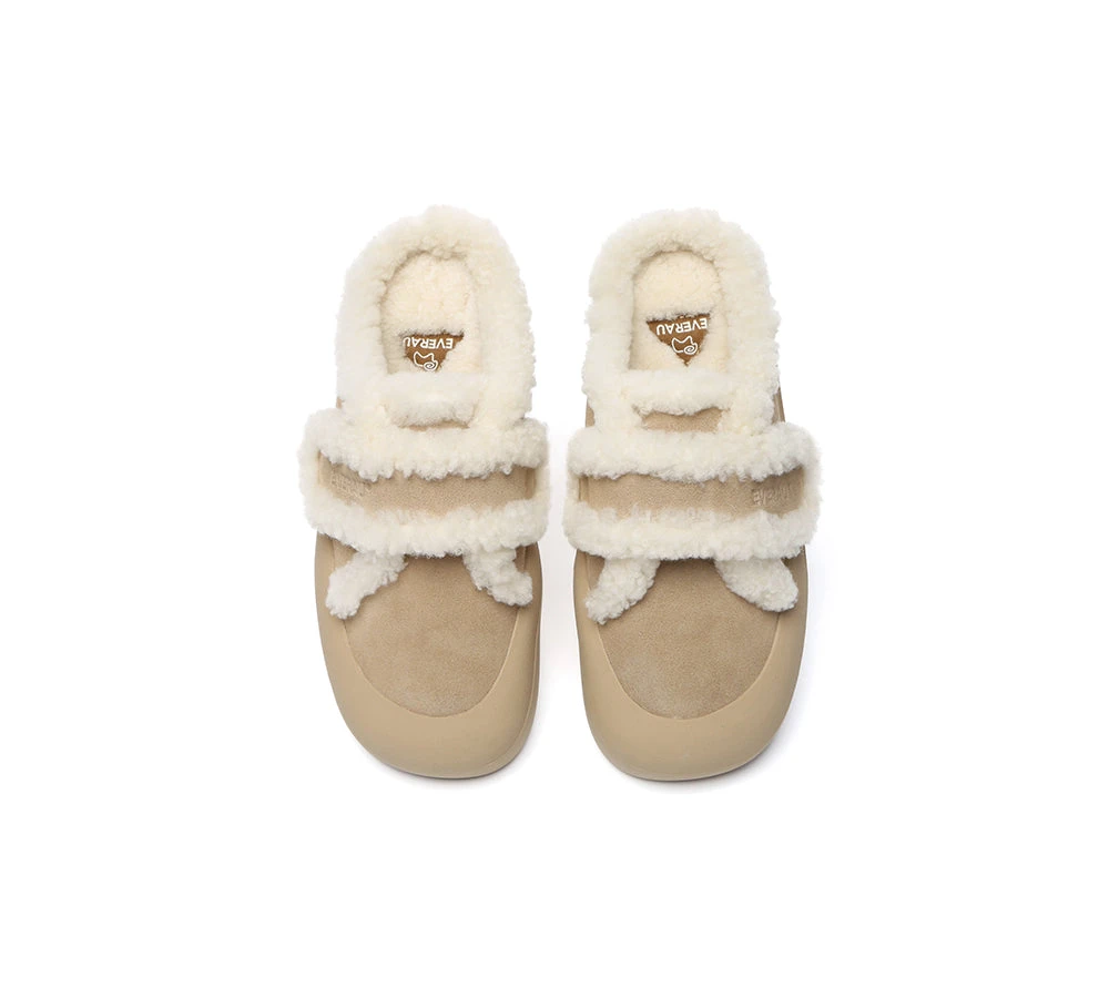 EVERAU® UGG Slippers Women Sheepskin Wool Adjustable Strap Shearling Lined Stacia #EA2061