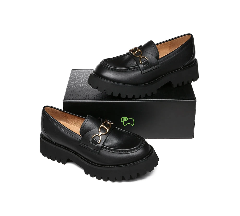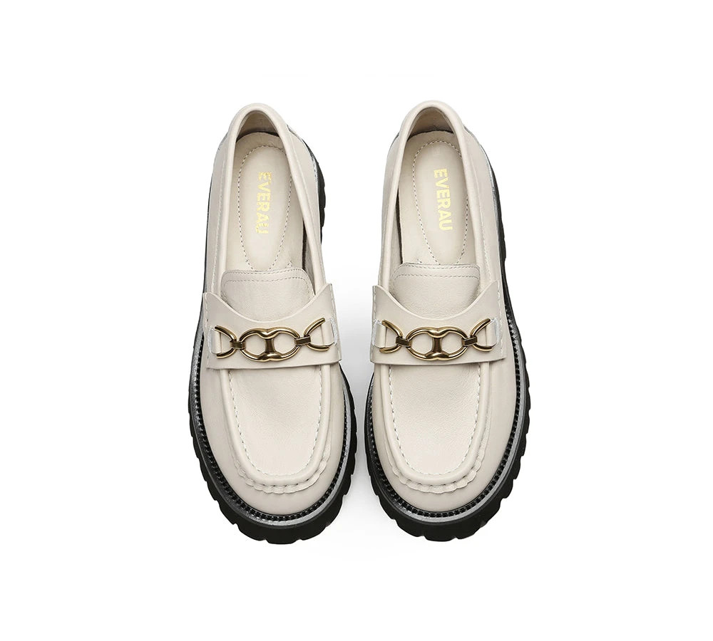 EVERAU® Women Chunky Platform Flats Gold Buckle Casual Loafers Patty #EA7010
