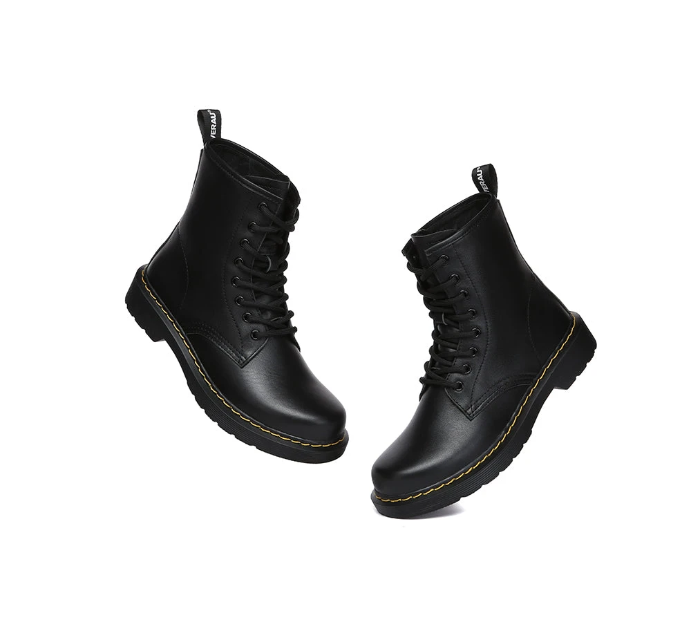 Women Leather Lace Up Black Chunky Boots Simona #EA4036