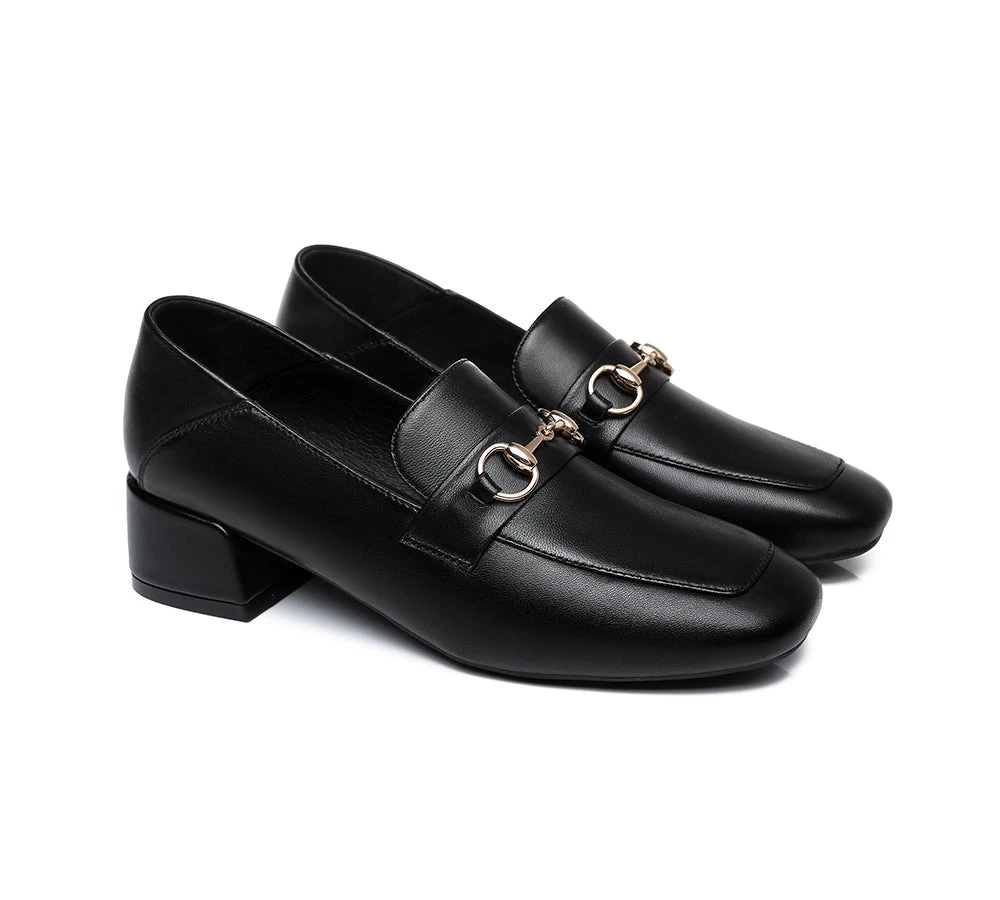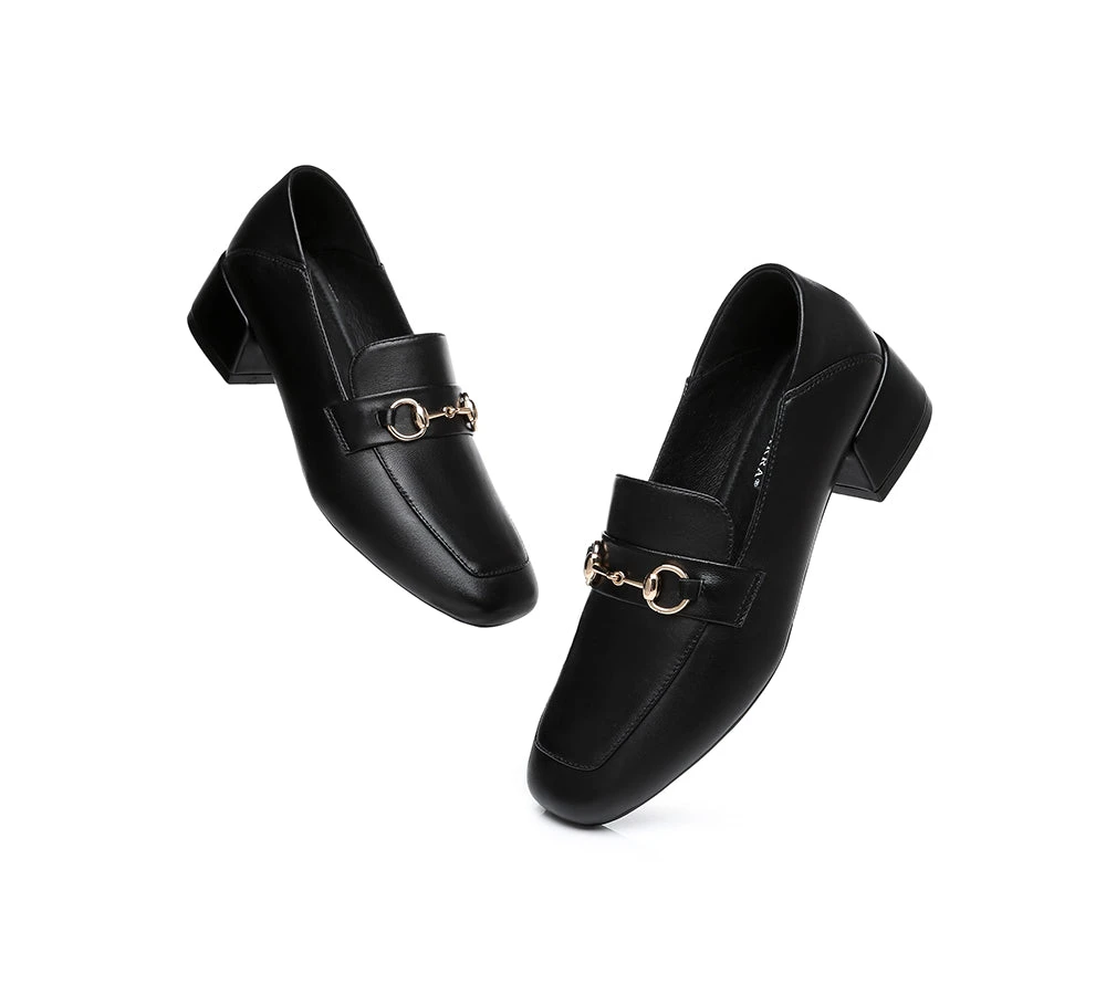Elevate your style with the one-of-a-kind Mia Leather Block Heels. Adorned with a captivating gold-toned buckle, these heels redefine sophistication. The premium leather exterior, coupled with a comfortable block heel and elegant panel detailing, sets these shoes apart. Available in versatile black and beige, they are the perfect addition to your wardrobe upgrade.