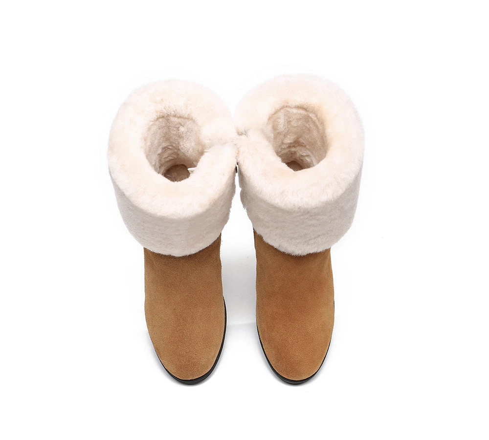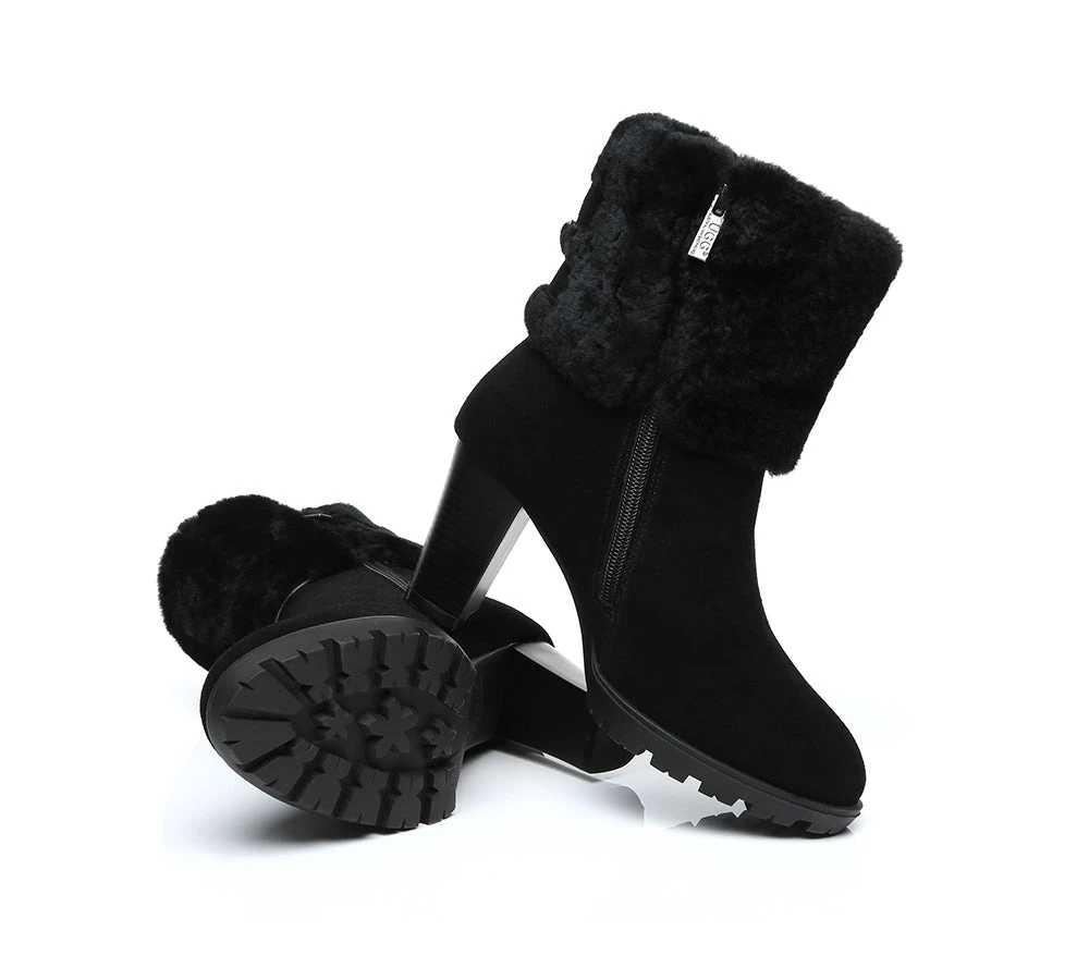 UGG Australian Shepherd® Women Shearling Zippered Heels Fashion Boots Candice#AS6002