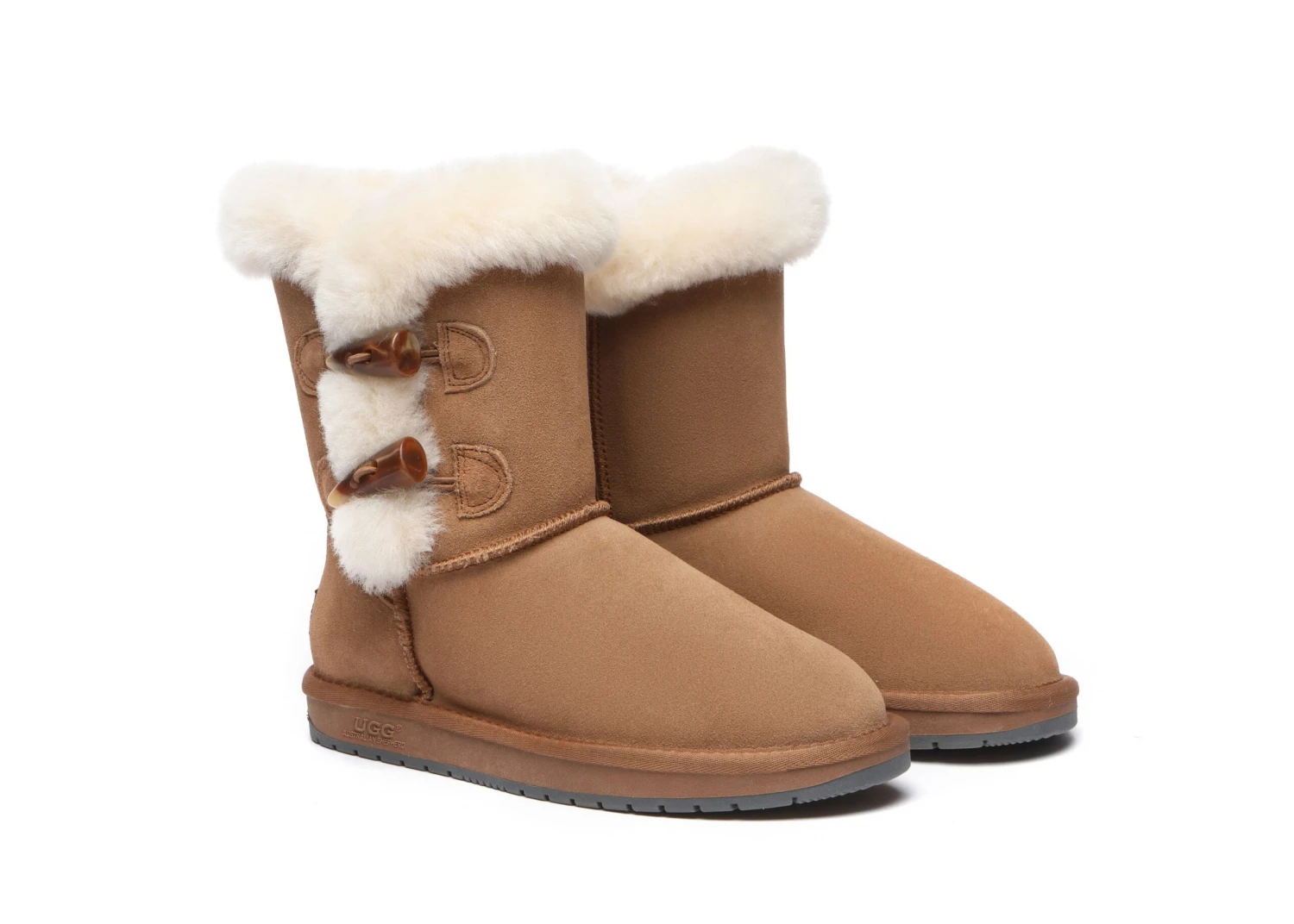 AS UGG Women Short Boots Talia Twin Face Sheepskin Double Horn Toggle Closure #AS3018