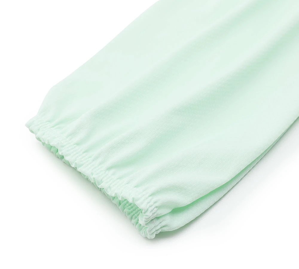 - The elastic band design on the cuffs fits arms of any size.